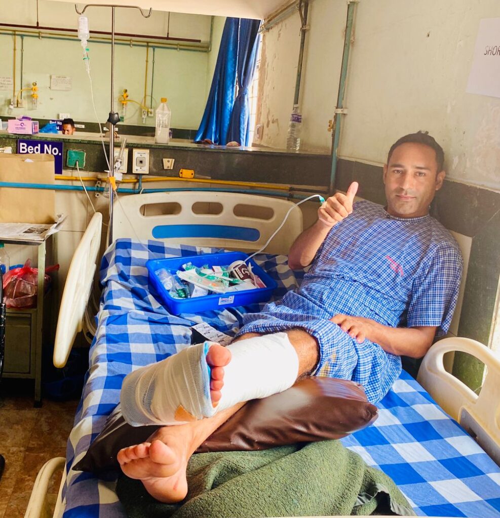 At the Trauma Center, doctors bandaged the wound to stop bleeding and gave me medicines. They asked me to wait for two days for undergo surgery because there were many other injured patients needing emergency treatment. After two days, the surgery was performed. I stayed in the hospital for 16 days. However, later due to high risk of infection, I had to request the doctor to discharge me. Currently, I have to visit the hospital every three days for dressing. Doctors say it will take six months for me to walk again and at least a year for complete recovery.